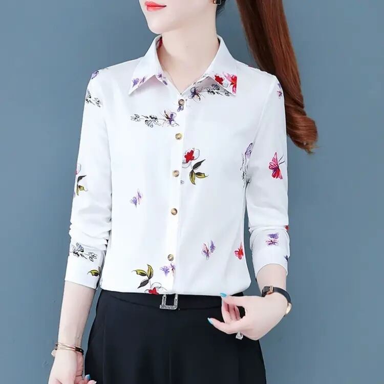レディース トップス シャツ ブラウス 長袖 襟付き 角襟 前開き ボタン かわいい 大人可愛い きれいめ カジュアル おしゃれ かっこいい アジアン こなれ感 メンズライク マニッシュ ボーイッシュ 個性的 クール エレガント 主役級 存在感 抜け感 キュート ワイルド 大人っぽい 大人女子 お洒落 華やか 花柄 ボタニカル プリント 蝶 春 秋 女性用 20代 30代 40代 50代 お出かけ 普段使い 着回し S M L XL 2XL 3XL 大きいサイズ プラスサイズ