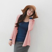 ボタンと襟のないデザインでサッと羽織ってサマになる無地のトッパーカーディガン。後ろ裾が前より少し長めのアンバランスなヘムデザインで、太ももやヒップ等気になる部分を自然に体型カバーでき自信を持って着ることができます。