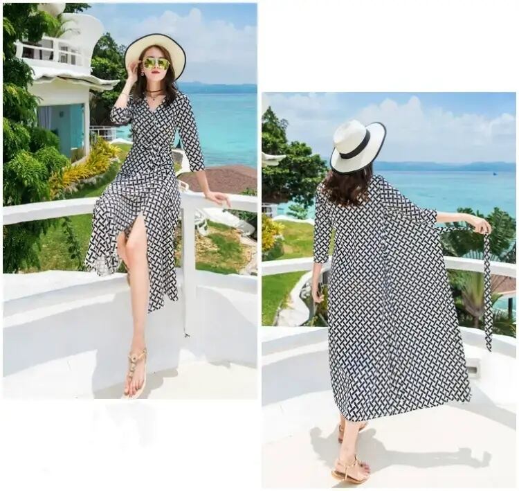 レディース ワンピース マキシワンピース カシュクールワンピース ロング ミモレ 7分袖 七分袖 Vネック 襟付き スリム 細身 ストレート Iライン ラップ フェミニン ウエストマーク ハイウエスト 前開き 薄手 かわいい 大人可愛い シンプル 上品 おしゃれ エキゾチック 個性的 クール エレガント モダン 主役級 存在感 抜け感 ラブリー キュート 都会的 大人っぽい 大人女子 清潔感 セクシー 色気 お洒落 華やか プリント 総柄 春 秋 女性用 楽ちん 美脚 脚長 普段使い 定番 スタイルアップ