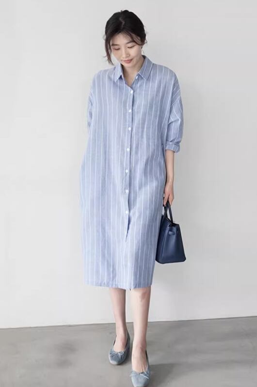 ワンピース シャツ シャツワンピ 膝上 ミディアム 長袖 襟付き ワイド ストレート Iライン かわいい 大人可愛い きれいめ シンプル カジュアル おしゃれ レトロ ラフ クール ナチュラル ストライプ 春 夏 レディース 女性用 女の子 オフィス OL 通勤 通学 デート お出かけ キャンプ 旅行 レストラン 公園 女子会 休日 バカンス ガーデン ショッピング カフェ 重ね着 楽ちん 体型カバー 普段使い 着回し モテ 清楚 S M L XL 大きいサイズ ゆったり ゆる ライトグレー レイクブルー