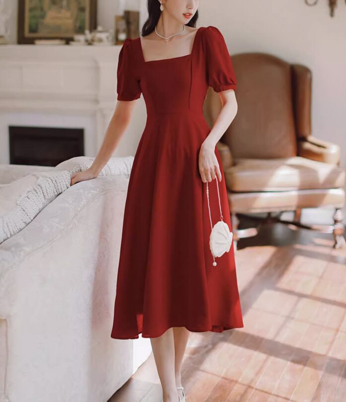レディース スカート ワンピース ドレス ロングスカート ミモレ 半袖 ボリューム袖 パフスリーブ スクエアネック 襟なし フレア セミフレア Aライン フェミニン ハイウエスト かわいい 大人可愛い きれいめ シンプル 上品 おしゃれ レトロ エレガント 主役級 存在感 フォーマル クラシカル ロマンティック ナチュラル 無地 夏 二次会 披露宴 発表会 パーティー イベント レストラン 女子会 休日 バカンス ホテル ガーデン 発表会 合コン コンパ 婚活 S M L XL ホワイト ブラック レッド