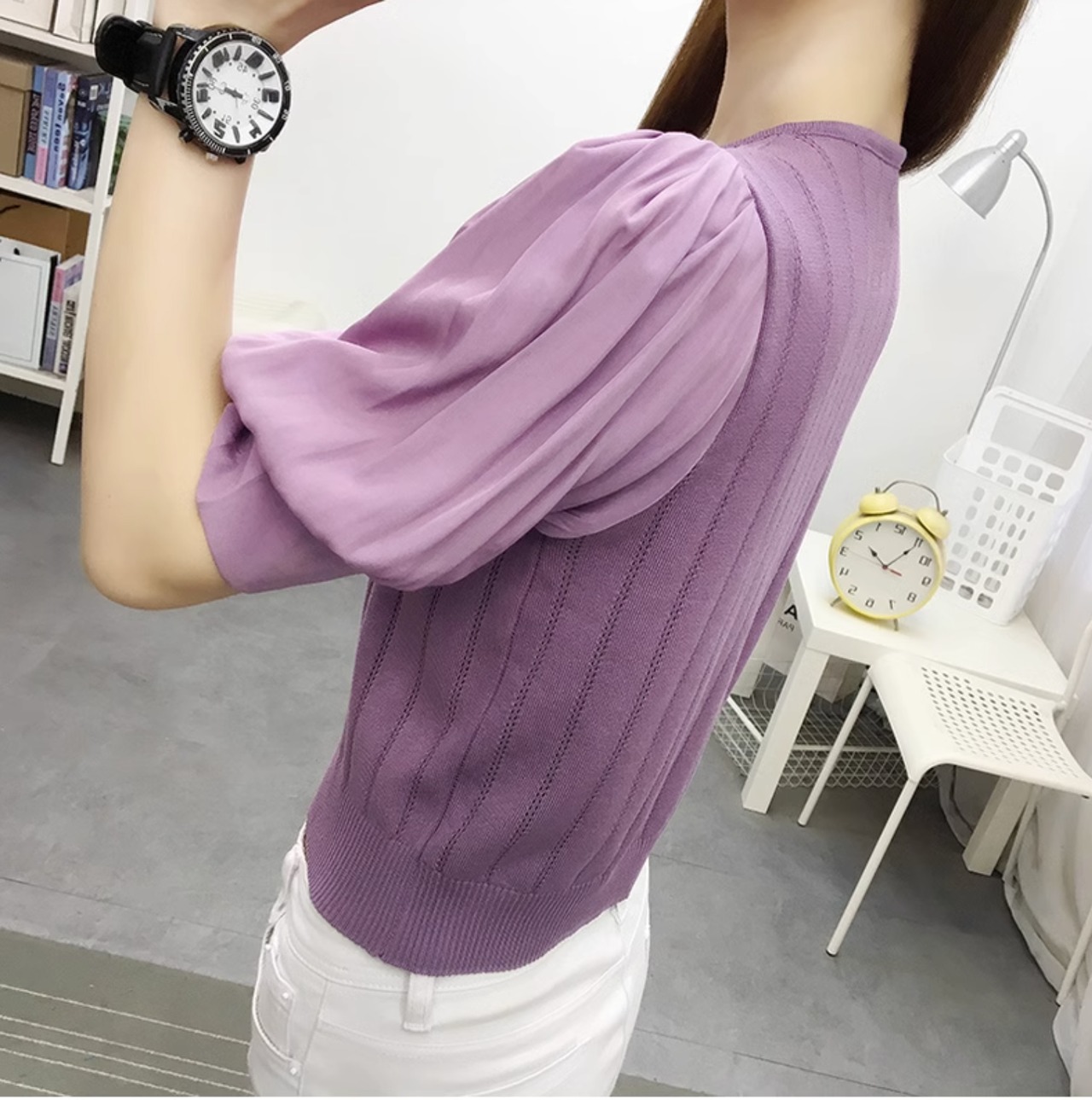 レディース トップス ニット サマーセーター サマーニット 半袖シャツ フロントボタン ショート 半袖 5分袖 パフスリーブ 透け感 シアー 異素材ミックス かわいい 大人可愛い きれいめ シンプル カジュアル 上品 おしゃれ レトロ こなれ感 ガーリー エレガント キュート 春 夏 秋 オフィス ビジネス OL 通勤 学生 デート お出かけ パーティー イベント 旅行 女子会 休日 バカンス ショッピング 韓国 オルチャン コーデ 普段使い 着回し 清楚 二の腕カバー S M L XL 白 黒 紫