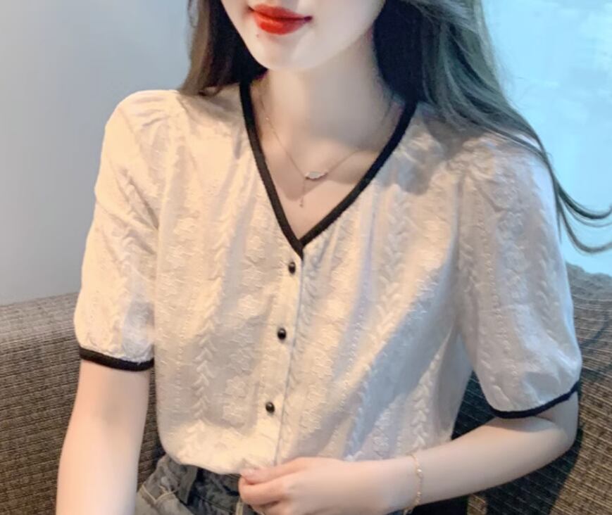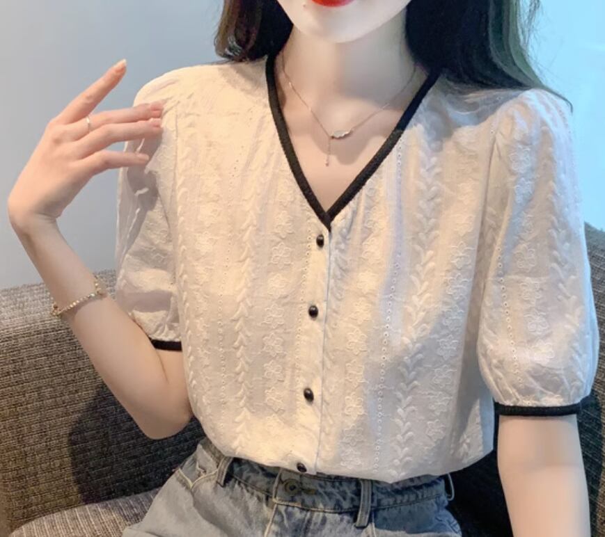 フェミニンで大人可愛い印象を与える半袖シャツ