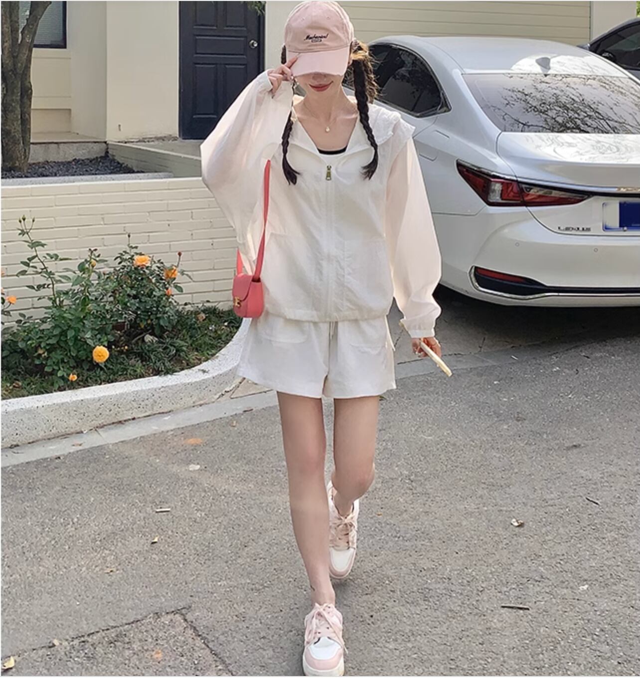2点セット スポーツウェア セットアップ パーカー ショートパンツ レディース 日焼け防止 紫外線対策 UV対策 短パン 長袖 かわいい 大人可愛い シンプル カジュアル おしゃれ かっこいい こなれ感 メンズライク マニッシュ スポーティー 抜け感 キュート 無地 春 夏 デート お出かけ お泊まり アウトドア キャンプ リゾート 旅行 海 プール ビーチ ジム 公園 休日 バカンス フェス 韓国 コーデ 楽ちん 普段使い 着回し S M L XL ゆったり 白 ホワイト