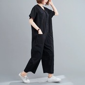 レディース ワンピース オールインワン つなぎ パンツワンピ アンクル丈 クロップド丈 半袖 Vネック ワイド ストレート Iライン ポケット ボタン かわいい シンプル カジュアル おしゃれ かっこいい レトロ こなれ感 ラフ メンズライク マニッシュ ボーイッシュ ルーズ エレガント キュート ベーシック アクティブ ワイルド 大人っぽい お洒落 無地 春 夏 女性用 休日 楽ちん 体型カバー 普段使い ロールアップ 動きやすい ゆったり ゆる フリーサイズ 黒 ブラック カーキ 2色展開