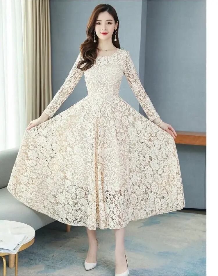 フレアワンピース ワンピドレス レディース ワンピース ドレス 膝下 ミモレ 長袖 ラウンドネック フレア Aライン レース 透け感 シースルー 薄手 かわいい 大人可愛い きれいめ シンプル 上品 おしゃれ ガーリー エレガント 抜け感 ラブリー キュート ロマンティック 大人っぽい 大人女子 清潔感 ロマンチック お洒落 華やか 花柄 フラワー 春 秋 謝恩会 結婚式 二次会 披露宴 女性用 体型カバー 美脚 モテ 清楚 スタイルアップ 動きやすい 涼しい 大きいサイズ プラスサイズ