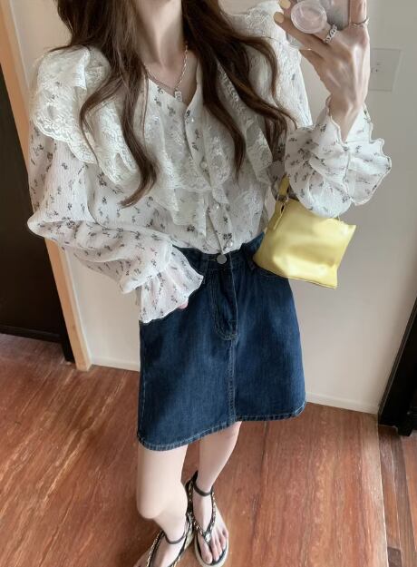 トップス シャツ フレア ミディアム 長袖 トランペットスリープ Vネック 襟なし セミフレア 細身 フェミニン シフォン かわいい 大人可愛い きれいめ シンプル カジュアル 上品 おしゃれ レトロ ガーリー ルーズ ナチュラル 花柄 フラワー 春 夏 秋 レディース 女性用 女の子 10代 20代 通勤 通学 デート お出かけ イベント リゾート 旅行 レストラン 公園 女子会 休日 バカンス ホテル ガーデン ショッピング カフェ 普段使い 着回し ゆったり ゆる フリーサイズ アプリコット