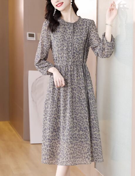 ワンピース シャツワンピ 膝下 ミモレ 長袖 パフスリーブ ラウンドネック スリム 細身 Iライン ウエストリボン ハイウエスト かわいい 大人可愛い きれいめ シンプル 上品 おしゃれ レトロ エレガント ナチュラル セクシー 花柄 フラワー 夏 レディース 女性用 女の子 30代 通勤 デート お出かけ パーティー イベント リゾート 旅行 レストラン 休日 バカンス ホテル ガーデン ショッピング カフェ 体型カバー 普段使い 着回し M L XL 2XL 3XL 4XL ゆったり ゆる グレー