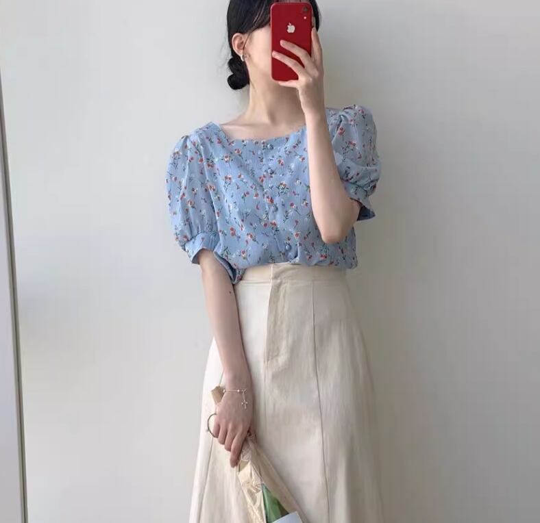 レディース トップス シャツ ブラウス カットソー 半袖 パフスリーブ スクエアネック 襟なし ボタン 薄手 かわいい 大人可愛い きれいめ シンプル カジュアル おしゃれ アジアン こなれ感 ラフ 個性的 エレガント 主役級 存在感 とろみ感 抜け感 ラブリー キュート カレッジ風 学生風 ロマンティック ナチュラル 花柄 フラワー 夏 ママ OL 学生 デート お出かけ リゾート 旅行 レストラン 公園 女子会 休日 バカンス ショッピング 普段使い モテ 清楚 S M L XL ベージュ ブルー