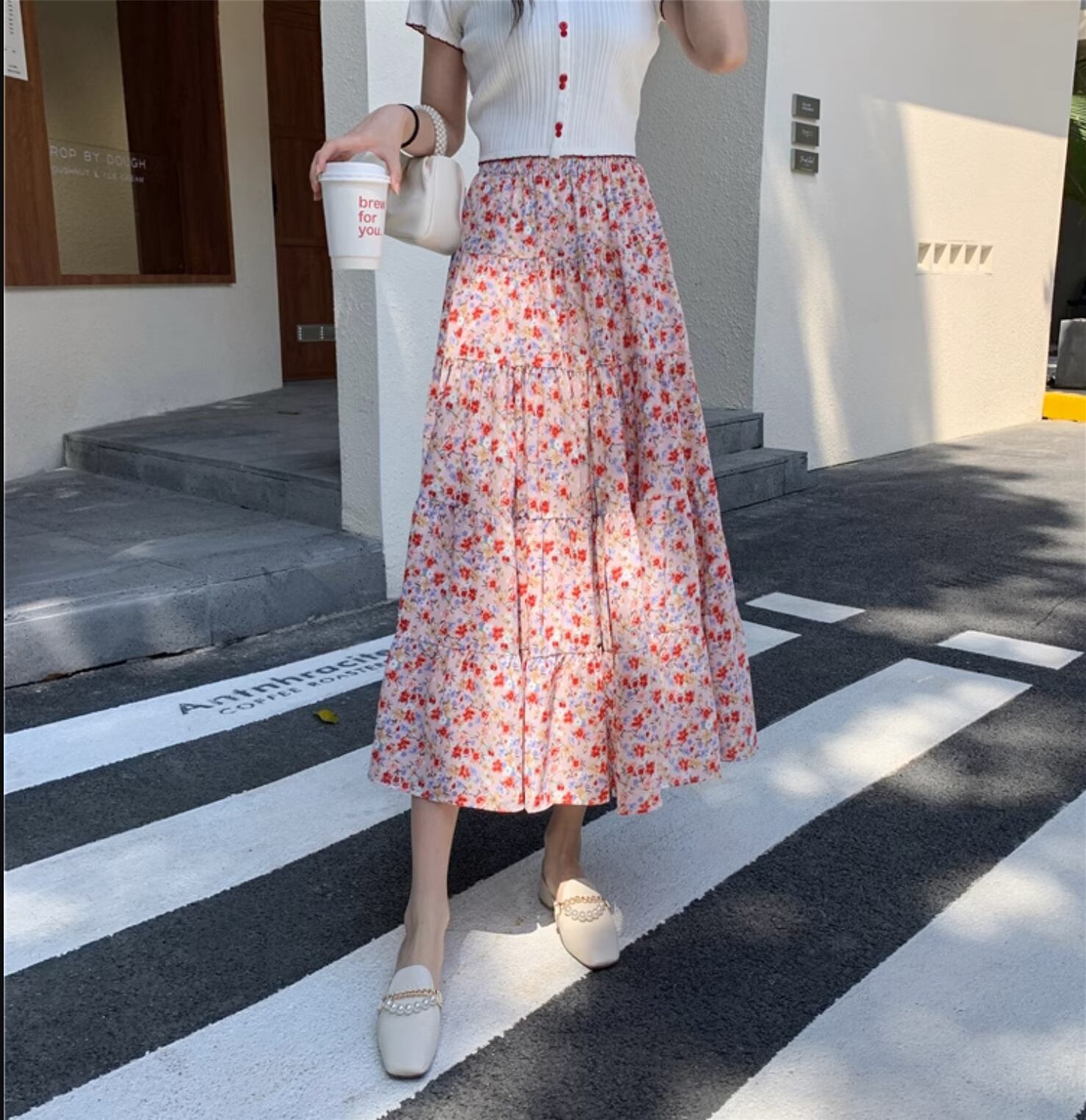 フレアシルエットが上品な花柄ロングスカートです。カジュアルにもきれいめにも着回せるデザインになっていて着るだけで女性らしさがグッとアップします。ウエストはゴム仕様なので着心地も抜群です。