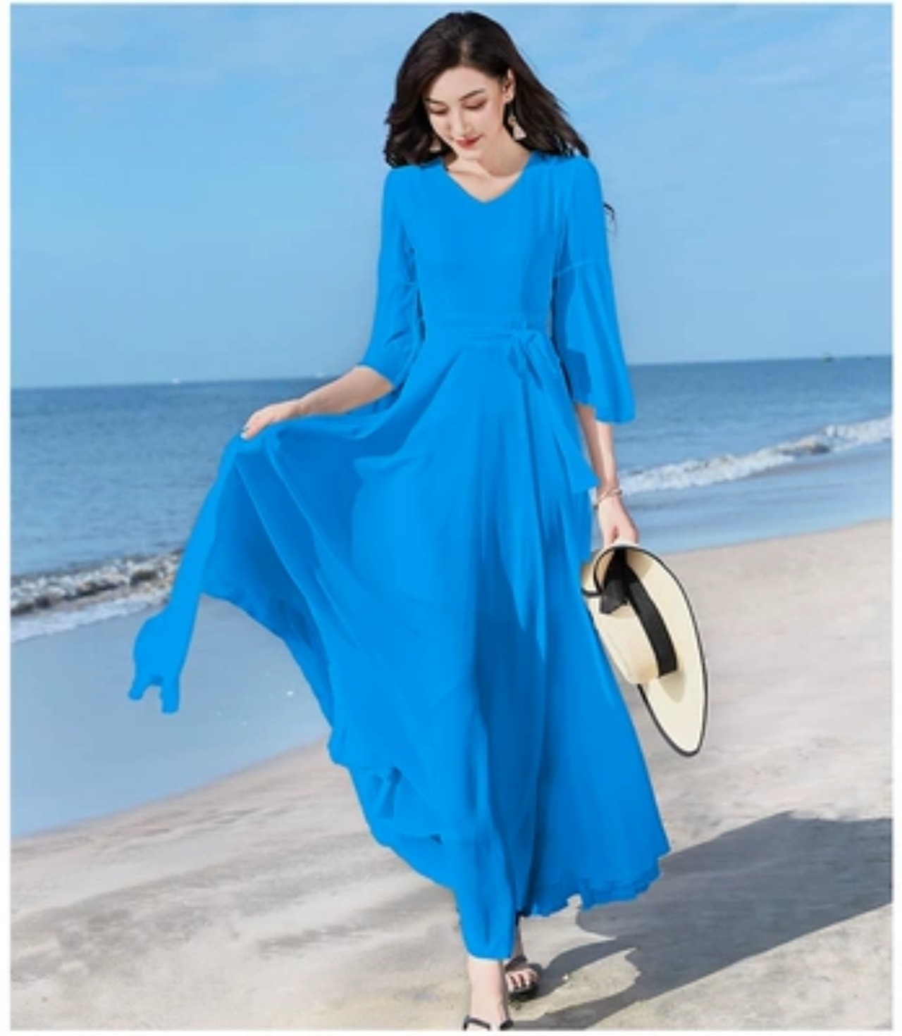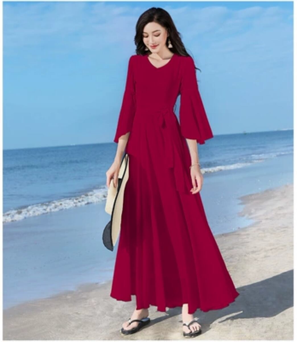 レディース ワンピース マキシワンピース フレアワンピース ロング マキシ 7分袖 ベルスリーブ 七分袖 Vネック フレア Aライン フェミニン リボン ウエストマーク ウエストリボン ハイウエスト かわいい 大人可愛い きれいめ シンプル 上品 おしゃれ ガーリー エレガント ラブリー キュート ベーシック ロマンティック 大人っぽい 大人女子 清潔感 ロマンチック お洒落 爽やか 無地 春 夏 女性用 お出かけ リゾート 旅行 海 ビーチ 韓国 オルチャン 清楚 定番 スタイルアップ 10色展開
