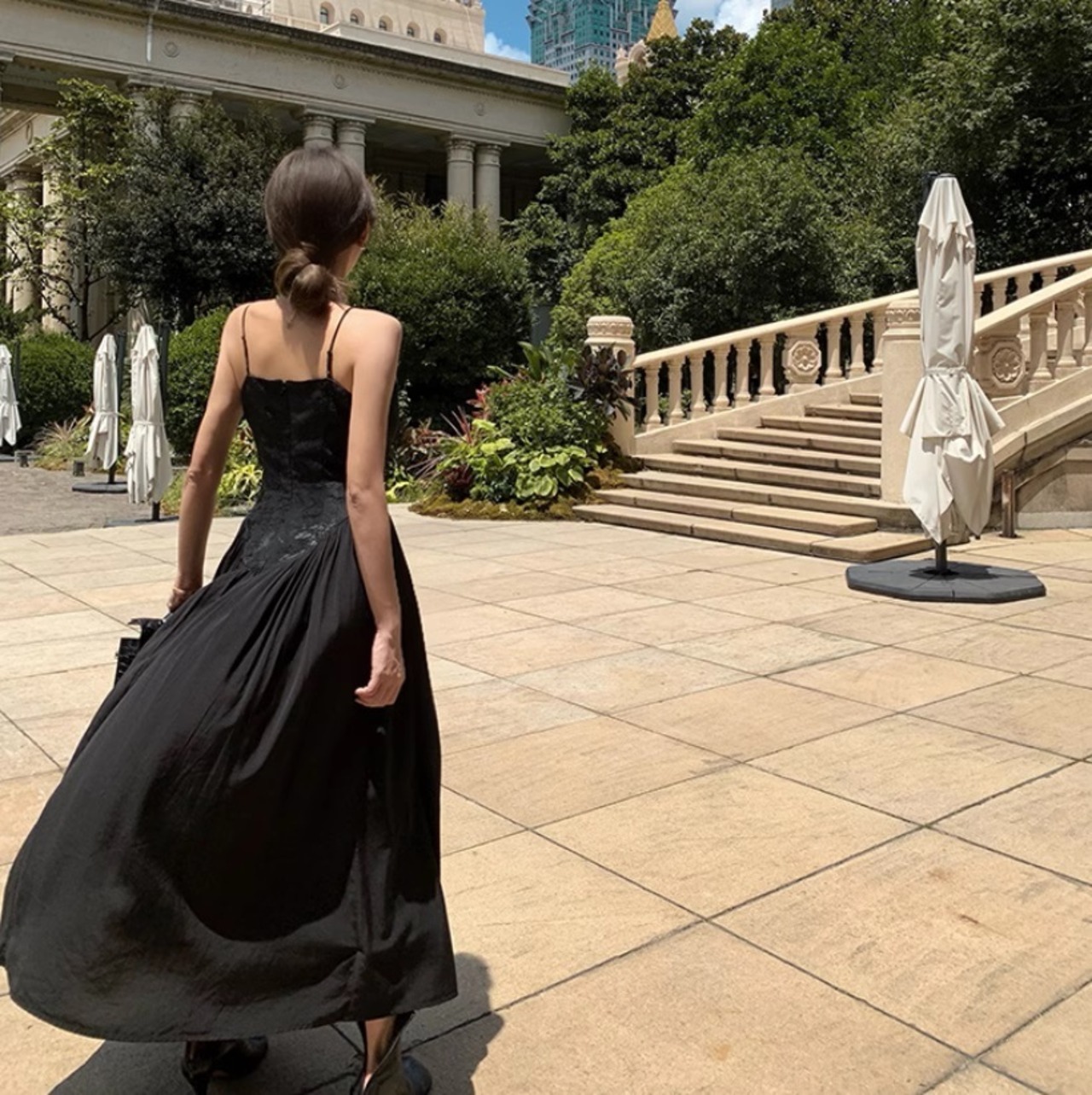 ウエストV字切替え ベルライン キャミソールドレス ビスチェ風 ブラックドレス レディース ワンピース ドレス ロング マキシ 袖なし ノースリーブ Vネック フィットアンドフレア メリハリ レース 切り替えデザイン ドッキング 異素材ミックス きれいめ シンプル 上品 おしゃれ エレガント フェミニン ヴィンテージ ラグジュアリー クラシカル 大人っぽい セクシー 女っぽ 無地 花柄 春 夏 秋 謝恩会 発表会 ママ パーティー イベント 韓国 オルチャン 脚長 インスタ映え S M L 黒 モノトーン