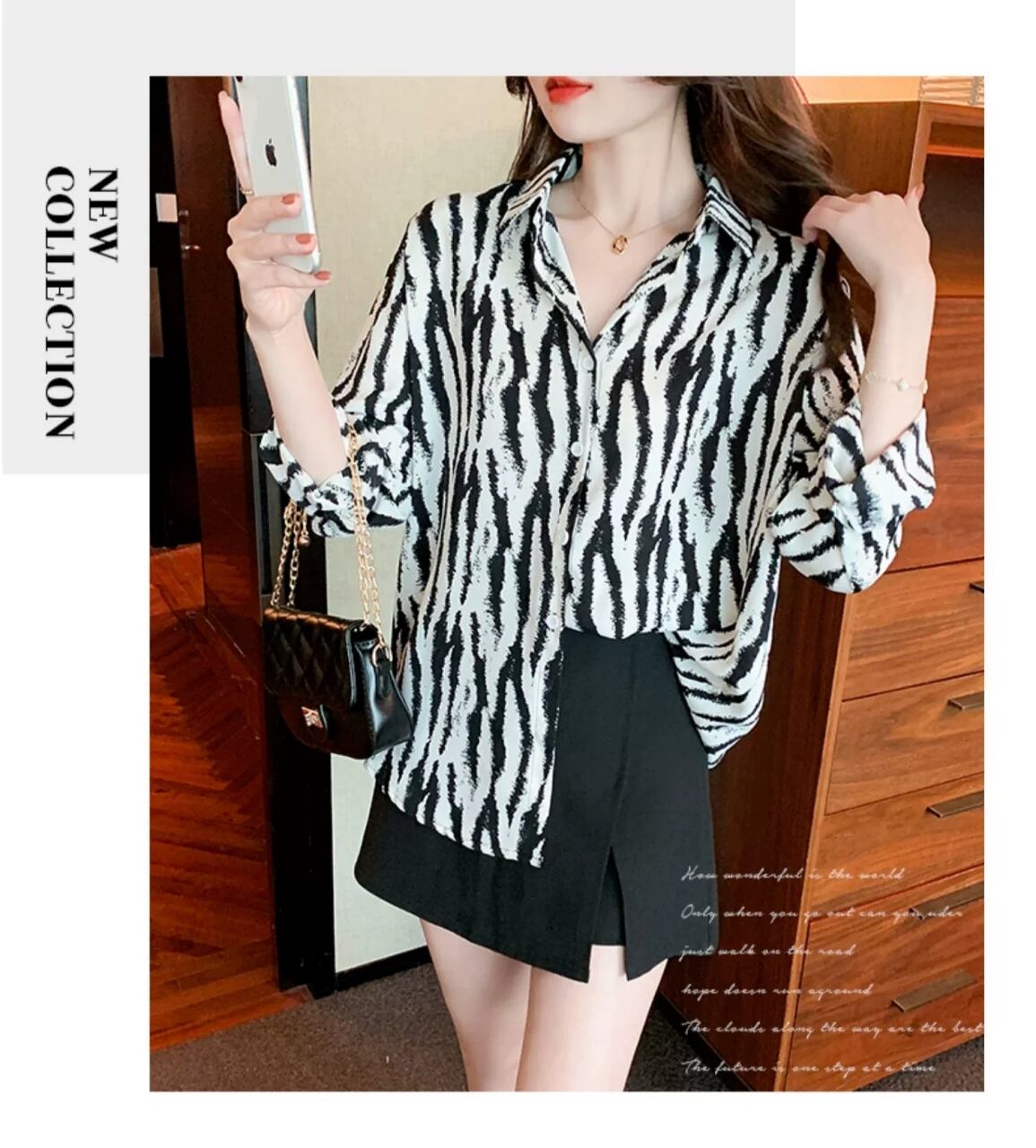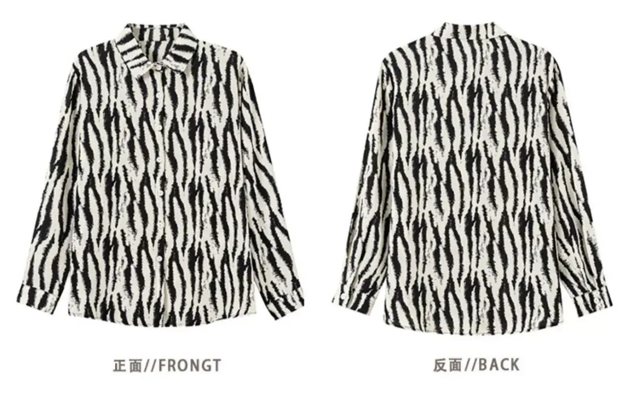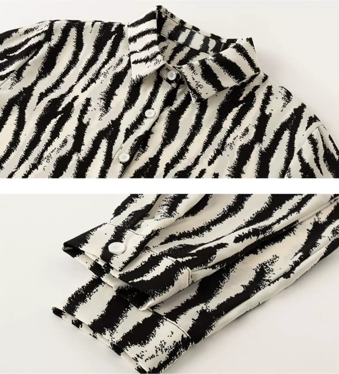 華やかさとセクシーさを兼ね備えた、大人可愛いゼブラ柄シャツです。角襟とワイルドなアニマル柄プリントが、上品かつ個性的な雰囲気を演出します。モダンでクールなデザインは、主役級の存在感を放ち、着るだけでおしゃれ度がアップします。