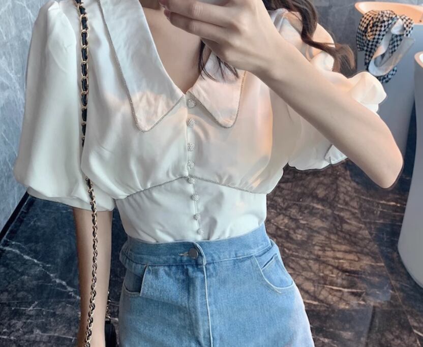 レディース トップス シャツ ブラウス 前開き 半袖 パフスリーブ Vネック 襟付き フェミニン ボタン かわいい 大人可愛い きれいめ シンプル カジュアル 上品 おしゃれ レトロ ラフ エレガント 主役級 存在感 とろみ感 抜け感 ラブリー キュート 都会的 カレッジ風 学生風 ロマンティック ナチュラル 夏 通勤 デート お出かけ リゾート 旅行 レストラン 公園 女子会 休日 バカンス ホテル ショッピング 合コン コンパ カフェ 婚活 コーデ 普段使い モテ 清楚 S M L ホワイト ブラック