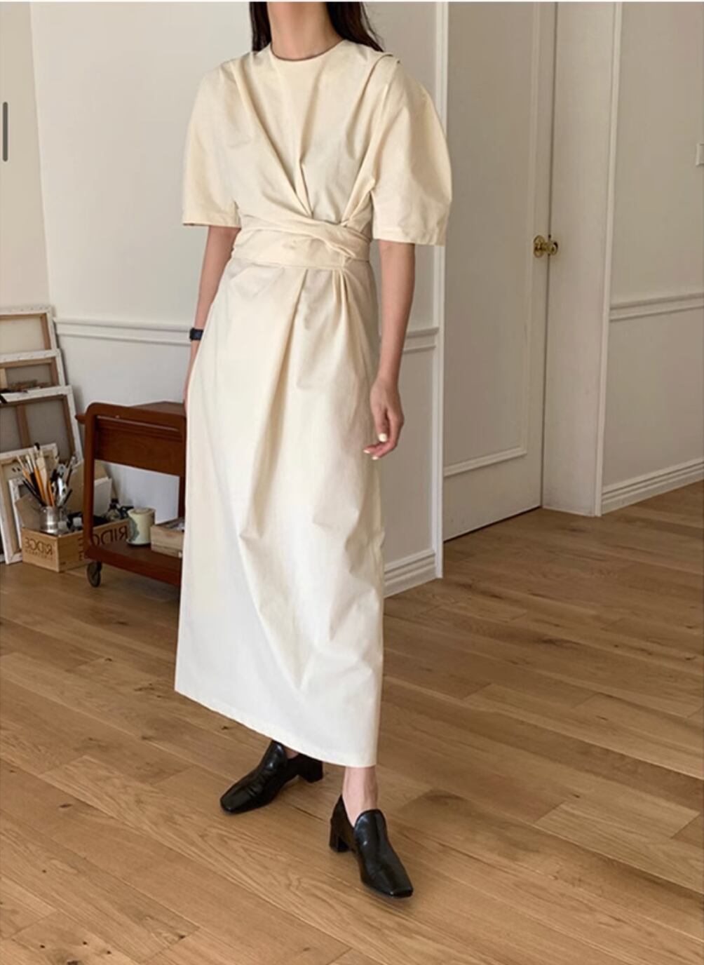 レディース ワンピース ロング 半袖 パフスリーブ ラウンドネック ウエストマーク ウエストリボン バックスリット ハイウエスト かわいい 大人可愛い きれいめ シンプル カジュアル 上品 おしゃれ レトロ こなれ感 キュート ベーシック ナチュラル 春 夏 ママ オフィス ビジネス OL 通勤 デート お出かけ お泊まり パーティー イベント リゾート 旅行 海 女子会 休日 ガーデン ショッピング 楽ちん 体型カバー 普段使い 着回し フリーサイズ ベージュ