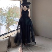 バレリーナ風 チュールスカートワンピ デコルテ見せ サマードレス レディース ワンピース 膝下 ミモレ ロング 袖なし ノースリーブ Vネック 襟なし ドッキング フィットアンドフレア ハイウエスト 透け感 シースルー 切り替えデザイン 異素材MIX かわいい 大人可愛い きれいめ シンプル カジュアル おしゃれ フェミニン 女っぽ 無地 夏 女の子 リゾート 旅行 ビーチ 休日 バカンス 重ね着 オルチャン コーデ 体型カバー 脚長 レイヤード インスタ映え S M L XL 白 ホワイト 黒 ブラック