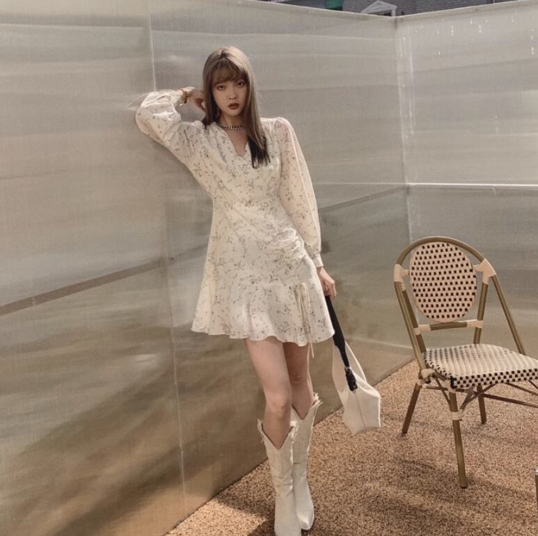 花柄のVネックミニワンピース