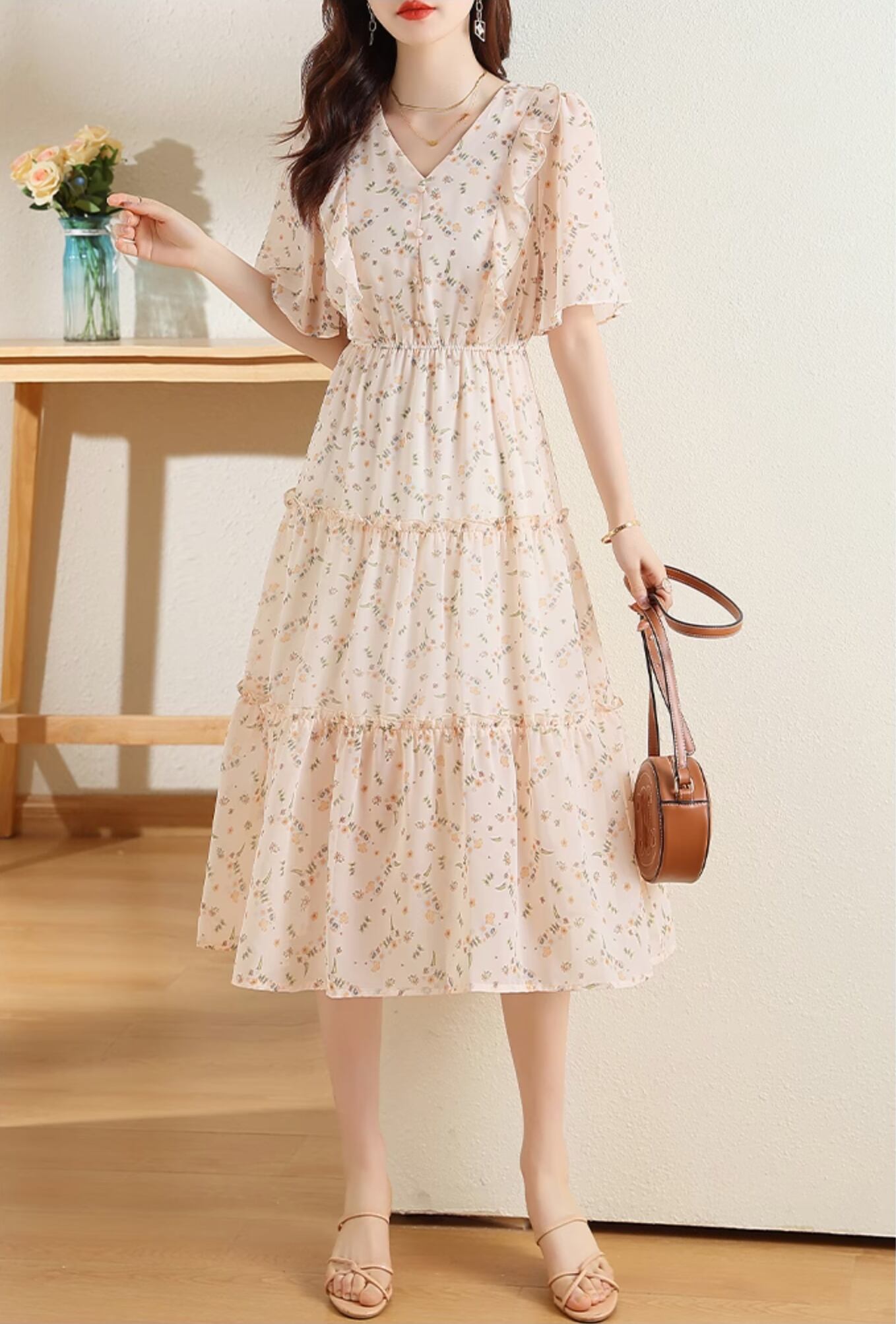 ワンピース レディース サマーワンピ フレア ロング 膝下 半袖 Aライン ハイウエスト ティアード シフォン かわいい 大人可愛い きれいめ シンプル カジュアル 上品 おしゃれ レトロ ガーリー エレガント ラブリー キュート ナチュラル 花柄 フラワー 春 夏 ママ オフィス ビジネス OL 通勤 デート お出かけ お泊まり パーティー イベント リゾート 旅行 海 プール 女子会 休日 バカンス ショッピング 体型カバー 普段使い 着回し モテ 清楚 S M L XL 2XL