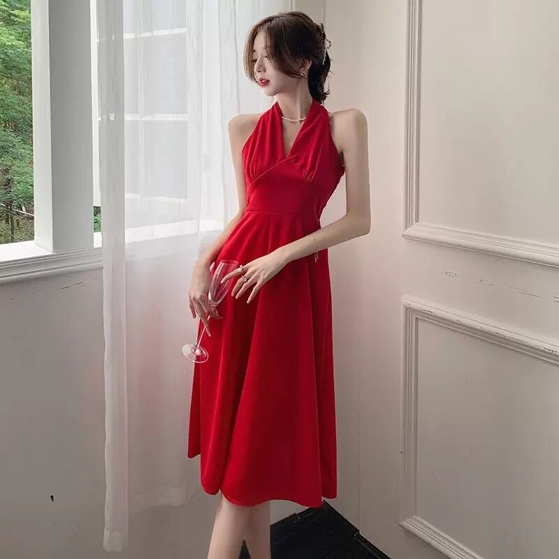 レディース スカート ワンピース ドレス フレア フレアスカート 膝下 ミモレ 7分丈 袖なし ホルターネック セミフレア Aライン フェミニン ハイウエスト かわいい 大人可愛い きれいめ シンプル 上品 おしゃれ 主役級 存在感 フォーマル とろみ感 ラブリー ロマンティック 無地 シーズンレス パーティー イベント リゾート レストラン コーデ 美脚 脚長 モテ S M L XL 黒 ブラック レッド