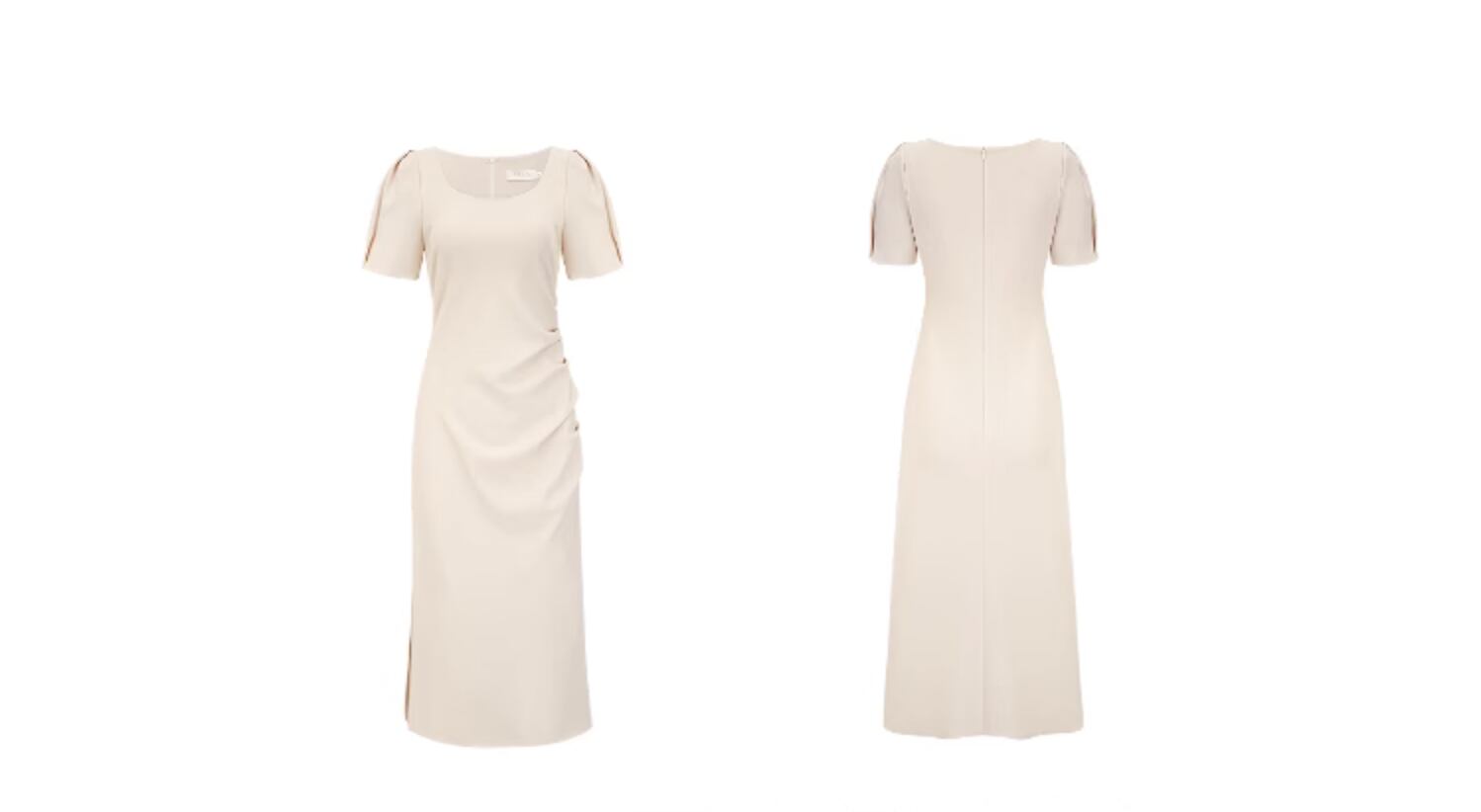 デコルテが綺麗に見えるサマーワンピースです。ドレープデザインが美しくタイトなシルエットが女性らしくメリハリのあるシルエットを引き立てます。レトロでありエレガントな雰囲気もプラスされ、着こなしに華やかさをプラスします。