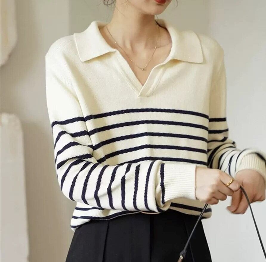 レディース トップス 長袖 Vネック 襟付き 大人可愛い きれいめ シンプル カジュアル 上品 おしゃれ こなれ感 ラフ 抜け感 ナチュラル ボーダー 春 秋 冬 オフィス ビジネス OL 通勤 デート お出かけ お泊まり 公園 コーデ 楽ちん 体型カバー 普段使い 着回し モテ 清楚 S M L XL 白 ホワイト 黒 ブラック オフホワイト