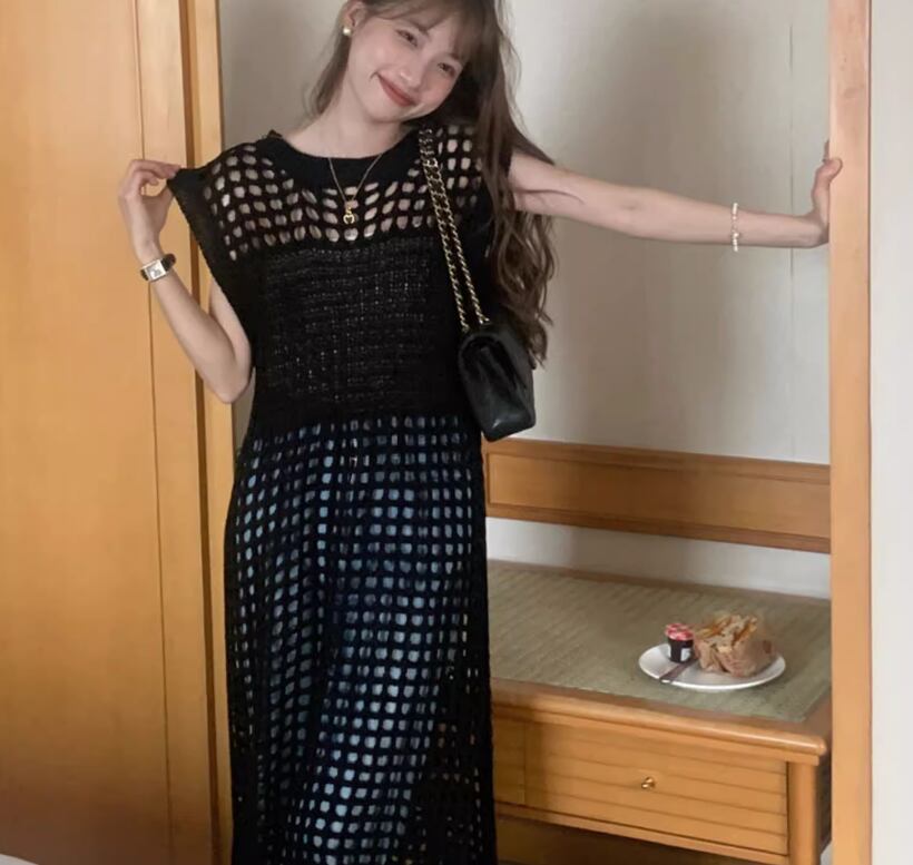 ニットメッシュドレス ニットベスト メッシュ レディース トップス ニット サマーニット 上着 丈長 袖なし ノースリーブ ラウンドネック 襟なし ノーカラー ストレート Iライン フェミニン 編み込み 編み上げ 透け感 かわいい 大人可愛い きれいめ シンプル カジュアル 上品 おしゃれ かっこいい レトロ アジアン こなれ感 ラフ ルーズ 個性的 主役級 存在感 とろみ感 抜け感 学生風 無地 春 夏 秋 デート 旅行 ショッピング 重ね着 コーデ 楽ちん 普段使い S M L ベージュ ブラック