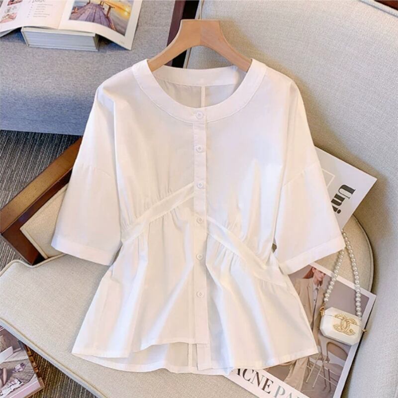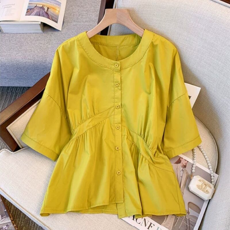 レディース シャツ ブラウス 7分袖 ドロップショルダー 七分袖 ラウンドネック フレア ペプラム フェミニン 前開き コンサバ ボタン かわいい 大人可愛い シンプル カジュアル 上品 おしゃれ こなれ感 ラフ 個性的 エレガント 抜け感 ラブリー キュート ベーシック 大人っぽい 大人女子 清潔感 お洒落 華やか 爽やか 無地 春 夏 秋 女性用 楽ちん 体型カバー 普段使い 着回し 清楚 動きやすい 涼しい 大きいサイズ ビッグ ゆったり ゆる プラスサイズ 白 ホワイト 黄色 イエロー