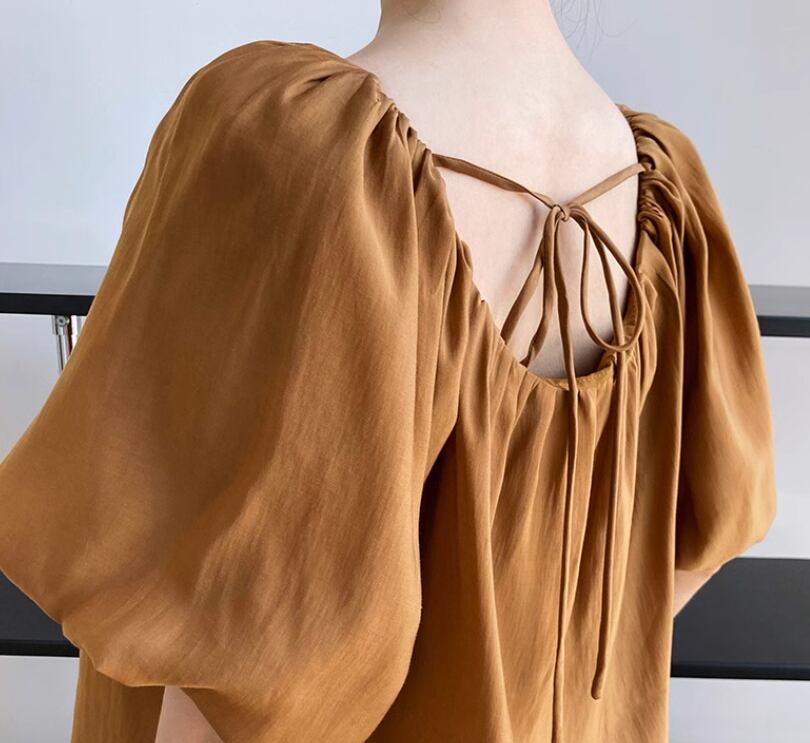 レディース トップス ブラウス カットソー ショート 半袖 パフスリーブ ラウンドネック ワンショルダー 襟なし ノーカラー フェミニン リボン 異国風 薄手 かわいい 大人可愛い きれいめ シンプル カジュアル 上品 おしゃれ レトロ こなれ感 ラフ ガーリー ルーズ 個性的 エレガント 主役級 存在感 とろみ感 抜け感 ラブリー キュート 都会的 ラグジュアリー ロマンティック ナチュラル 無地 夏 デート お出かけ 女子会 休日 ショッピング 合コン 普段使い モテ M L パープル キャメル