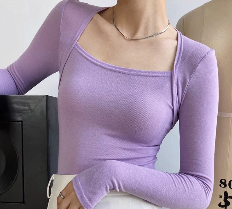 レディース トップス ロンT カットソー ノーカラーコート Tシャツ 長袖 萌袖 スクエアネック 襟なし タイト スリム 細身 ストレート 薄手 大人可愛い きれいめ シンプル カジュアル 上品 おしゃれ かっこいい エスニック エキゾチック こなれ感 ラフ 個性的 クール 主役級 存在感 都会的 無地 春 秋 OL 通勤 デート お出かけ リゾート 旅行 女子会 バカンス ショッピング 韓国 コーデ 普段使い モテ トレンド インスタ映え 定番 フリーサイズ ホワイト ブラック グリーン パープル