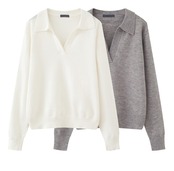 Vネックと襟付きデザインが、さりげなく女性らしい雰囲気を演出します。