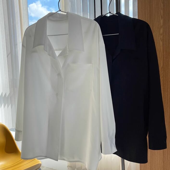 レディース トップス シャツ ブラウス Yシャツ 長袖 萌袖 襟付き ストレート 薄手 かわいい 大人可愛い きれいめ シンプル カジュアル 上品 おしゃれ かっこいい こなれ感 ラフ メンズライク マニッシュ ボーイッシュ ルーズ クール 主役級 存在感 抜け感 都会的 ベーシック ナチュラル 無地 春 秋 通勤 学生 デート お出かけ リゾート 旅行 女子会 休日 高原 ホテル ガーデン カフェ コーデ 楽ちん 体型カバー 普段使い ロールアップ 定番 M L ゆったり ゆる ホワイト ブラック