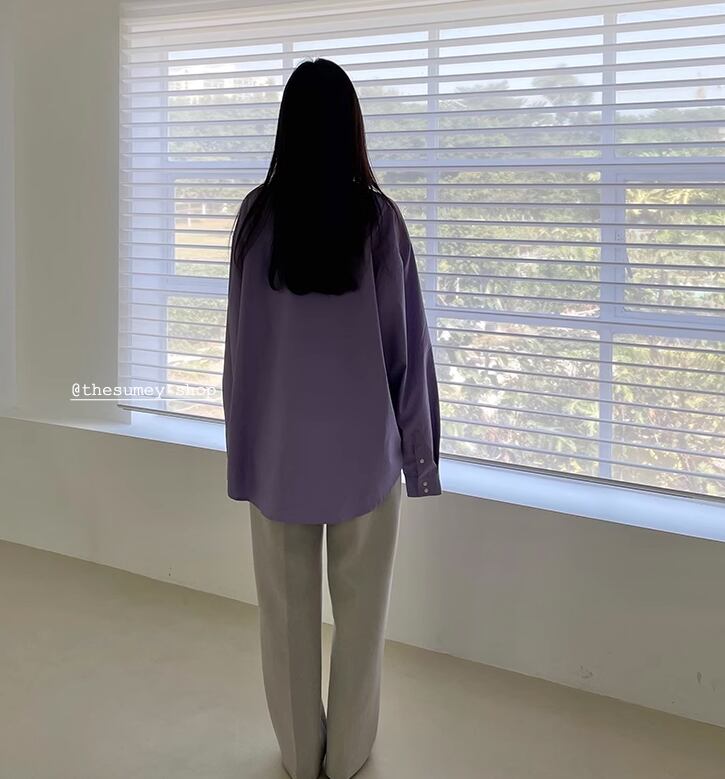 レディース シャツ ブラウス 前開き Yシャツ 長袖 萌袖 襟付き 角襟 ストレート ポケット ボタン かわいい 大人可愛い きれいめ シンプル カジュアル 上品 おしゃれ かっこいい レトロ こなれ感 ラフ メンズライク ボーイッシュ 主役級 存在感 カレッジ風 学生風 ベーシック ナチュラル 無地 春 秋 OL 通勤 学生 お出かけ リゾート 旅行 レストラン 公園 女子会 休日 バカンス 高原 ショッピング カフェ コーデ 楽ちん 体型カバー 普段使い 着回し 清楚 定番 フリーサイズ パープル