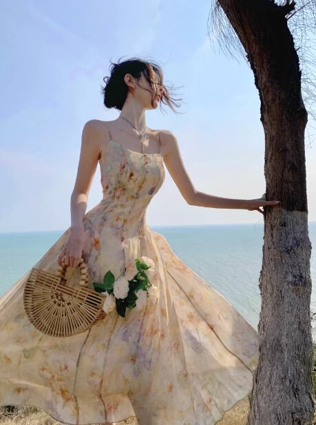 華やかな花柄が魅力のワンピースドレス。ノースリーブとなっており、夏の暑い季節でも快適に着ることができます。スクエアネックとウエストのプリーツデザインが、女性らしいフェミニンな雰囲気を演出します。Aラインのシルエットで、スリムで細身に見える効果もあります。カジュアルにも上品にもおしゃれに着こなせるアイテムです。デートやパーティーなど特別な日にはもちろん、リゾートや海、レストランなどでも大活躍間違いなし!バカンスや休日のお出かけにはぴったりです。サイズ展開も豊富で、SからXLまでご用意しております。さまざまなシーンでおしゃれを楽しんでください。