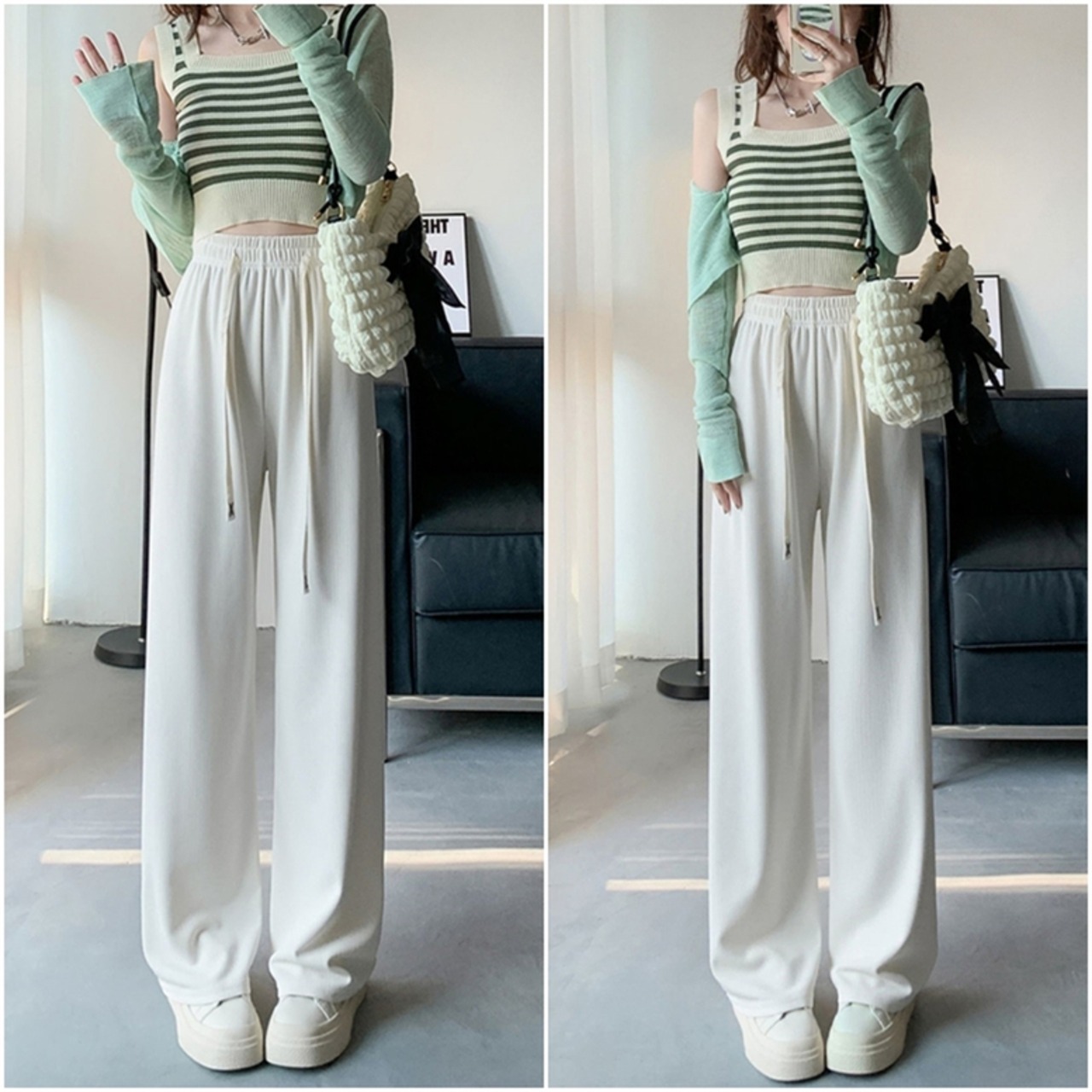 ラフながらもおしゃれに見える、リラックスリブパンツです。ゆったりとしたワイドパンツのシルエットが体型をカバーし、スタイルアップ効果もあります。ウエストゴムで楽ちんな着心地で、動きやすくて軽やかなので、アウトドアや普段のおでかけにもぴったりです。さらに、美脚見え効果もあり、脚長効果も期待できます。シンプルなデザインなので、どんなトップスとも相性が良く、上品な着こなしも可能です。キレイめなスタイルからカジュアルなスタイルまで、さまざまなシーンでお使いいただける一本です。仕事でもプライベートでも活躍する、新鮮なスタイルを提案します。体型を気にせず、自分らしくおしゃれを楽しんでください。