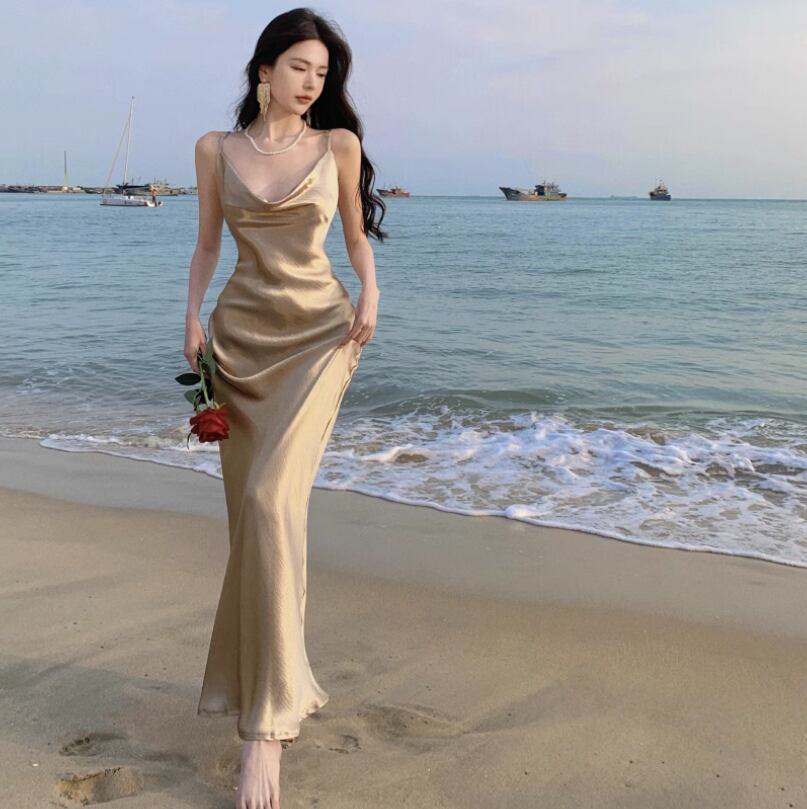 ドレスワンピース 膝下 ロング ノースリーブ ホルターネック タイト スリム 細身 ストレート Iライン 背中開き バックリボン ハイウエスト かわいい 大人可愛い きれいめ シンプル カジュアル 上品 おしゃれ レトロ クール エレガント ナチュラル セクシー 無地 夏 レディース 女性用 女の子 10代 20代 デート お出かけ パーティー イベント リゾート 旅行 レストラン 女子会 休日 バカンス ホテル ガーデン ショッピング 発表会 コンサート カフェ ディナー S M L XL シャンパン