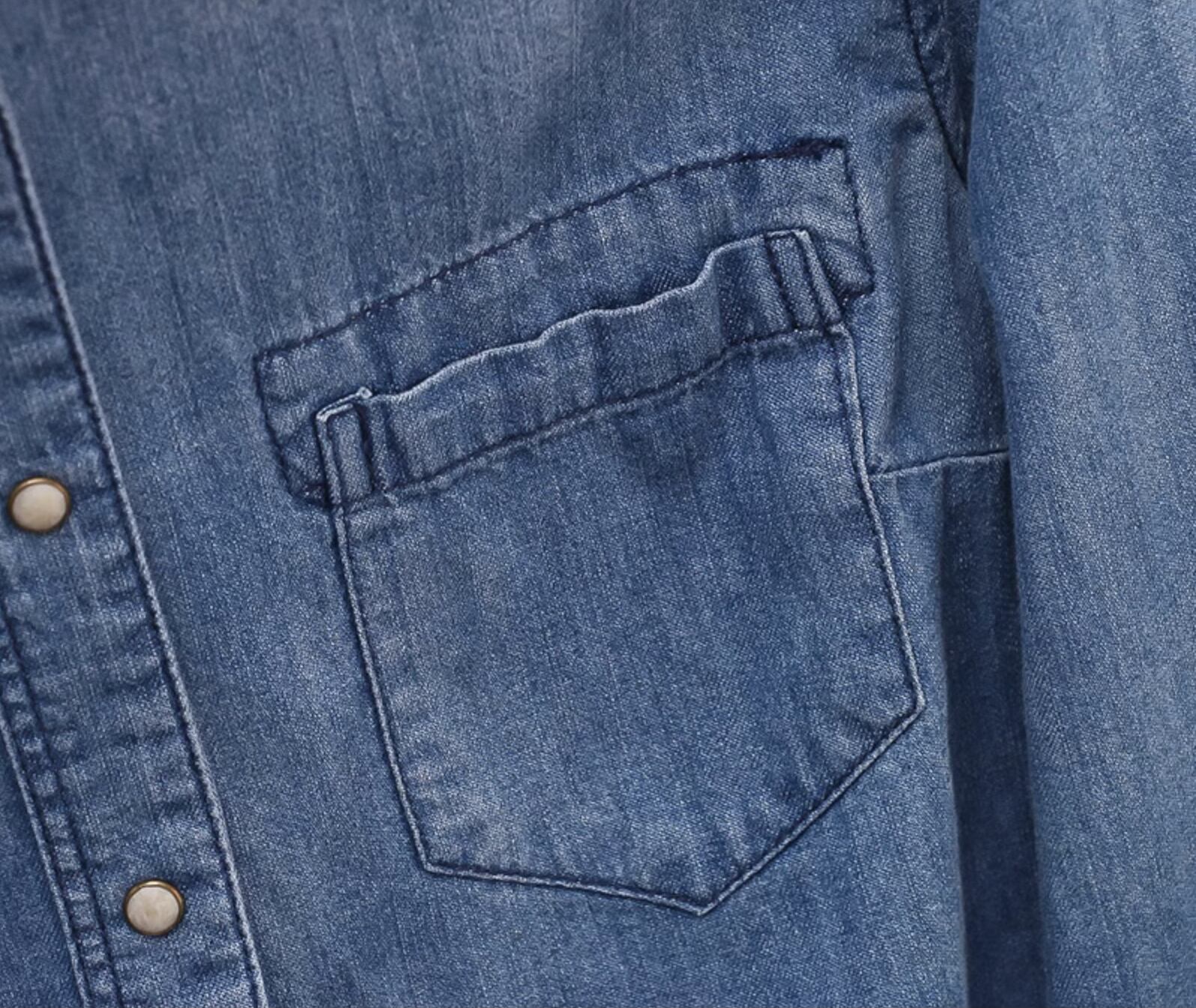 長袖のデニムシャツです。さまざまなシーンで着こなせるシンプルなデザインと、洗練されたカジュアルさが魅力的です。レトロな雰囲気を持ちながらも、今風のこなれ感もある一枚です。カッコいいメンズライクな着こなしを楽しみたい方や、ルーズな雰囲気でクールなスタイルを目指す方にもぴったりです。