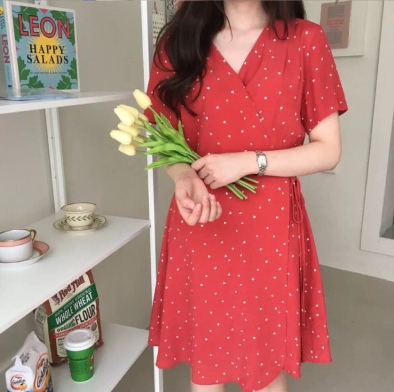 レディース スカート ワンピース オールインワン ドレス フレア 前開き フレアスカート 半袖 Vネック 襟なし セミフレア スリム 細身 Aライン ラップ フェミニン ウエストリボン 前開き 薄手 かわいい 大人可愛い きれいめ おしゃれ ラフ とろみ感 抜け感 キュート ドット柄 水玉 春 夏 マタニティ デート お出かけ お泊まり パーティー イベント リゾート 海 女子会 休日 バカンス 合コン コンパ 婚活 楽ちん 美脚 脚長 モテ 清楚 S M L 白 ホワイト 黒 ブラック レッド