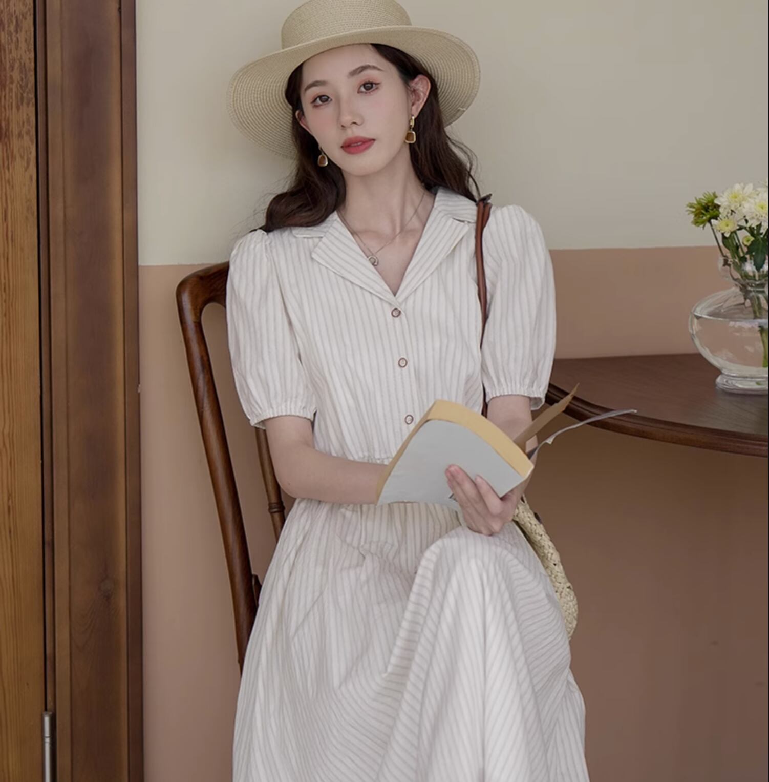 レディース ワンピース シャツワンピ サマーワンピ ロング パフスリーブ Vネック 襟付き フレア Aライン ベルト かわいい 大人可愛い きれいめ シンプル カジュアル 上品 おしゃれ レトロ こなれ感 ガーリー フォーマル ラブリー キュート ストライプ 春 夏 オフィス ビジネス OL 通勤 学生 デート お出かけ お泊まり パーティー イベント リゾート 旅行 海 ビーチ 女子会 休日 バカンス ショッピング コーデ 体型カバー 普段使い 着回し モテ 清楚 S M L XL