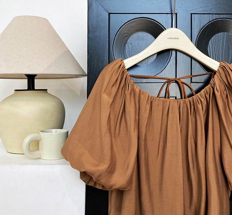 風船のように膨らんだボリューム袖が特徴のトップスです。女性らしいリボンやギャザーがアクセントで、かわいさと上品さをプラスしてくれます。風や動きに合わせてふわりと揺れる裾も魅力です。シンプルなデザインですが、バルーンスリーブが華やかさを演出し、コーディネートにこなれ感を与えます。