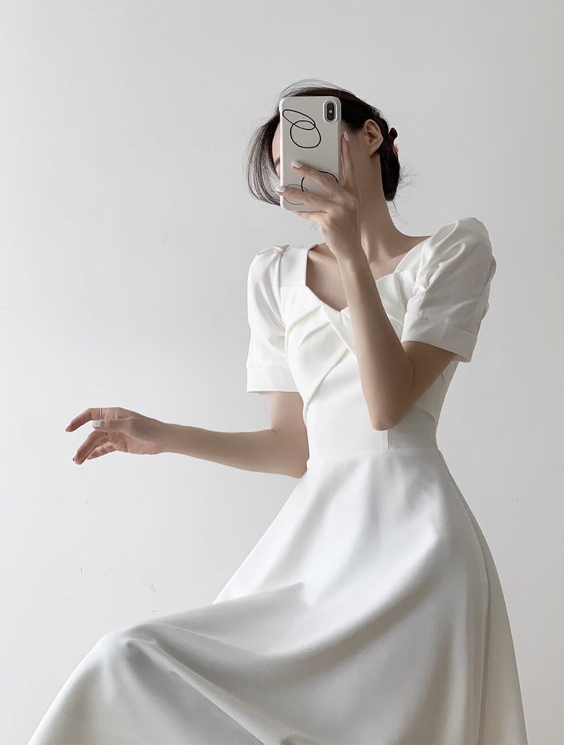 パーティードレス レディース ドレス ロング 半袖 ペンタゴンネック Aライン フェミニン ハイウエスト かわいい 大人可愛い きれいめ シンプル カジュアル 上品 おしゃれ レトロ ガーリー エレガント 主役級 存在感 フォーマル キュート プリンセス 無地 夏 シーズンレス セレモニー お呼ばれ ブライダル シック デート お出かけ お泊まり パーティー イベント リゾート 旅行 レストラン 休日 バカンス ホテル 発表会 婚活 ステージ 清楚 インスタ映え S M L XL ホワイト