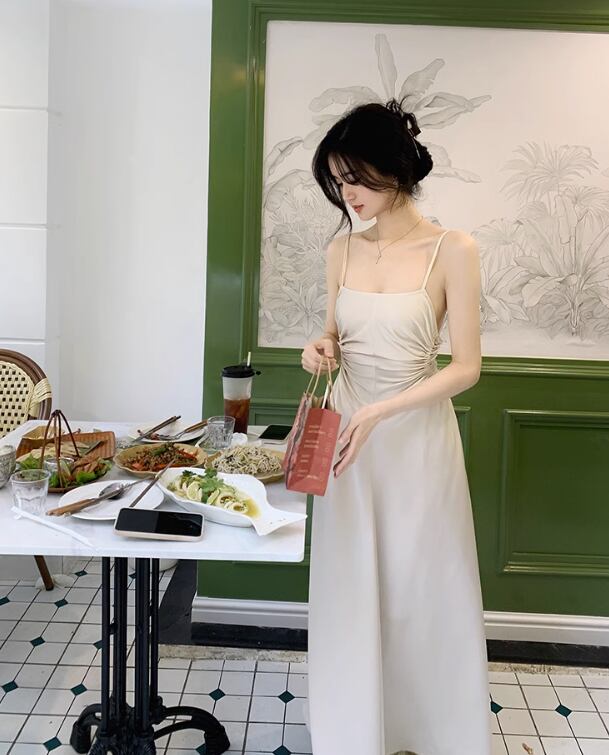 ワンピース ドレス ドレスワンピース ロング ノースリーブ スクエアネック タイト スリム 細身 ストレート 背中開き ウエストゴム サスペンダー かわいい 大人可愛い きれいめ シンプル 上品 おしゃれ かっこいい レトロ クール エレガント モダン ナチュラル セクシー 無地 夏 レディース 女性用 女の子 10代 20代 デート お出かけ パーティー イベント リゾート 旅行 海 プール レストラン ビーチ 休日 バカンス ホテル ガーデン 発表会 コンサート 清楚 S M L アプリコット