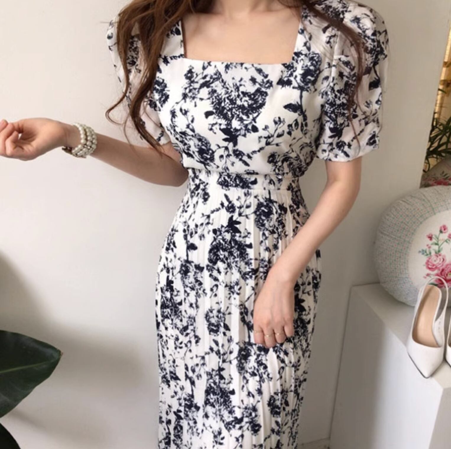 ワンピース レディース ドレス ロング マキシ 半袖 スクエアネック スリム フェミニン ウエスト紐 プリーツ ハイウエスト 切り替え かわいい 大人可愛い きれいめ シンプル カジュアル 上品 おしゃれ レトロ こなれ感 エレガント 花柄 フラワー 水墨画 夏 ママ デート お出かけ お泊まり パーティー イベント リゾート 旅行 海 プール レストラン ビーチ 休日 バカンス ホテル ショッピング 発表会 韓国 オルチャン コーデ 体型カバー 普段使い 着回し S M L