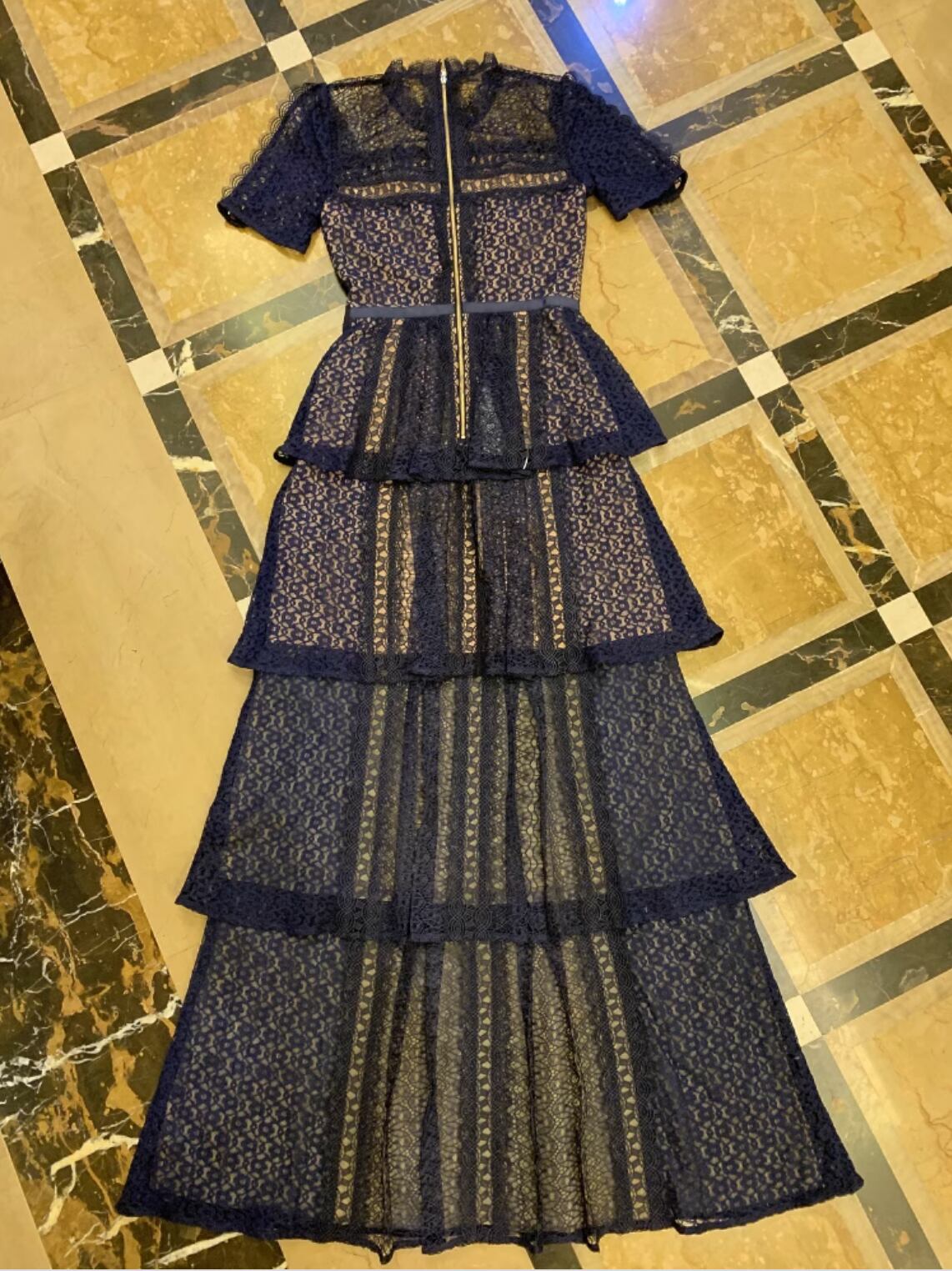 パーティードレス お呼ばれ レディース ティアード ロング マキシ 半袖 フェミニン レース フリル ウエストマーク ハイウエスト 透け感 シースルー クロシェ かわいい 大人可愛い きれいめ 上品 おしゃれ レトロ こなれ感 ガーリー 個性的 エレガント 主役級 存在感 ラグジュアリー 華やか 夏 結婚式 二次会 披露宴 セレモニー お出かけ パーティー イベント 発表会 ステージ 演奏会 舞台 イブニングドレス プレゼント 体型カバー インスタ映え XS S M L XL ネイビー