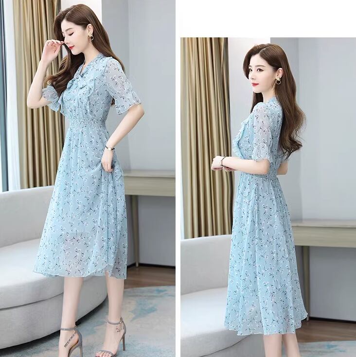 フェミニンで上品な花柄シフォンドレス