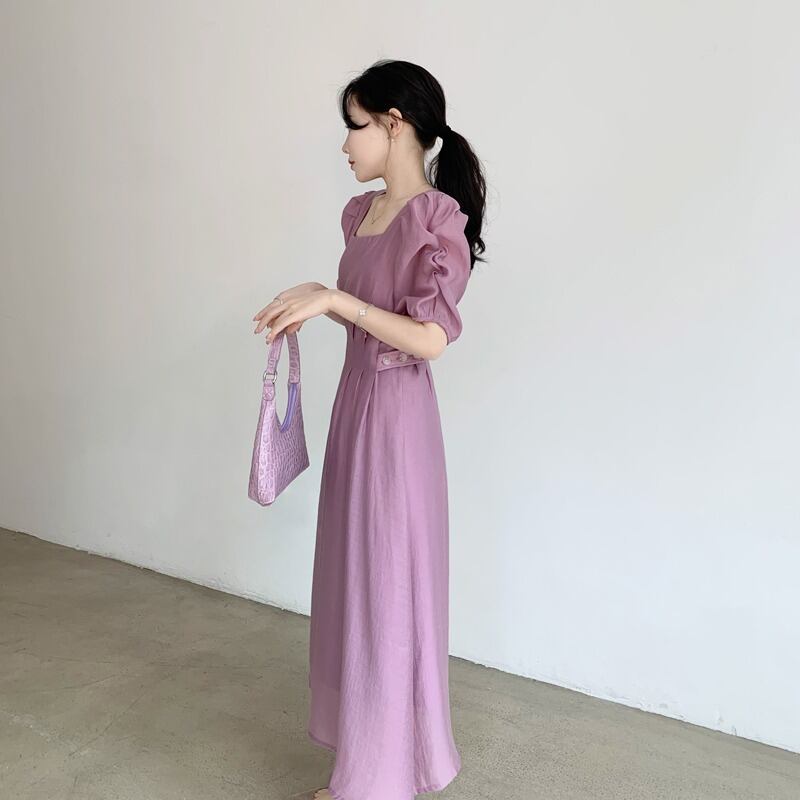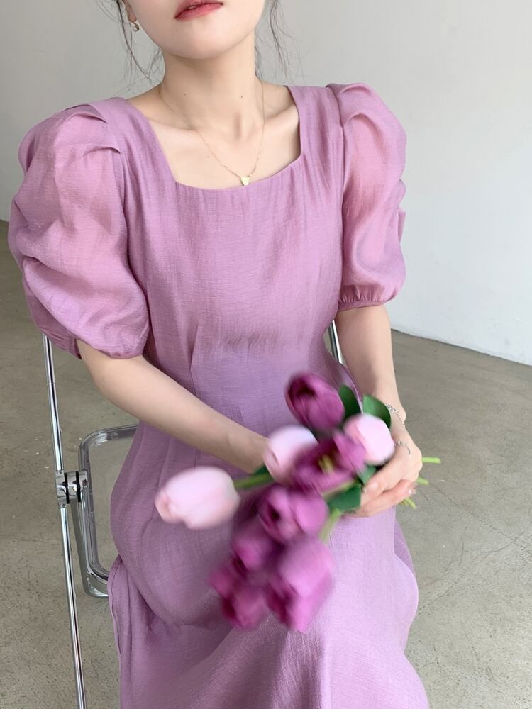 レディース ワンピース フレアワンピース ミモレ 半袖 ボリューム袖 バルーン袖 バルーンスリーブ スクエアネック フレア Aライン フェミニン タック ハイウエスト かわいい 大人可愛い きれいめ シンプル 上品 おしゃれ レトロ こなれ感 ガーリー エレガント 抜け感 ラブリー キュート クラシカル カントリー ロマンティック 大人っぽい 大人女子 清潔感 華やか 爽やか 無地 春 夏 女性用 デート お出かけ 公園 休日 楽ちん 体型カバー 美脚 普段使い モテ 清楚 定番 スタイルアップ