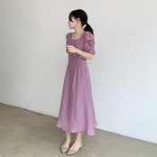 フェミニンとクラシカルが融合した、魅力的なデザインのワンピースです。バルーン袖とスクエアネックが、女性らしさを引き立てると同時に、エレガントな印象を演出します。ハイウエストのタックとAラインのフレアシルエットで、美しく華奢なシルエットを叶えます。春夏シーズンにぴったりなデザインで、デートやお出かけ、休日のカジュアルなシーンにもおすすめです。