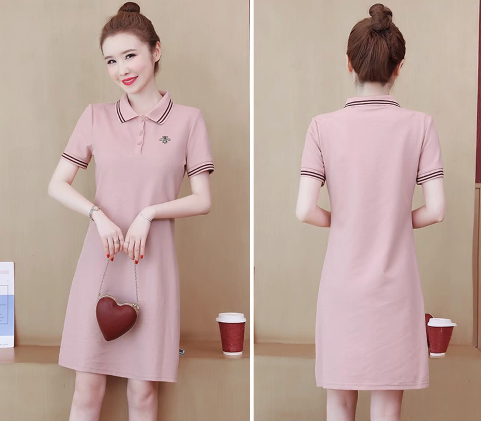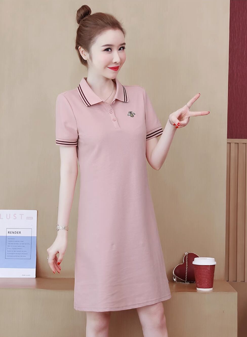 ポロカラーワンピース レディース シャツワンピース 膝上 半袖 襟付き Aライン ライン かわいい 大人可愛い きれいめ シンプル カジュアル 上品 おしゃれ レトロ こなれ感 スポーティー ガーリー 蜂刺繍 春 夏 秋 学生 デート お出かけ お泊まり アウトドア パーティー イベント リゾート 旅行 海 プール 休日 バカンス 重ね着 体型カバー 普段使い 着回し レイヤード S M L XL 2XL 3XL 4XL 大きいサイズ ホワイト ブラック ピンク ブルー