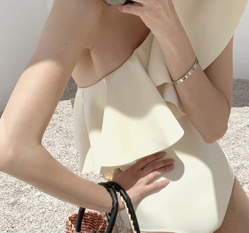 水着 スイムウェア レディース ワンピース フィットネス ワンショル パッド付き フリル ハイウエスト かわいい 大人可愛い きれいめ シンプル ナチュラル ゴージャス 華やか 大人っぽい おしゃれ お洒落 レトロ 主役級 存在感 ラブリー キュート 個性的 クール スタイリッシュ モダン かっこいい エキゾチック セクシー トレンド ベーシック フェミニン 無地 リゾート 旅行 プール 夏 海 美脚 脚長 着痩せ スタイルアップ 高見え 格上げ モテ 背中見せ こなれ感 M L XL オフホワイト