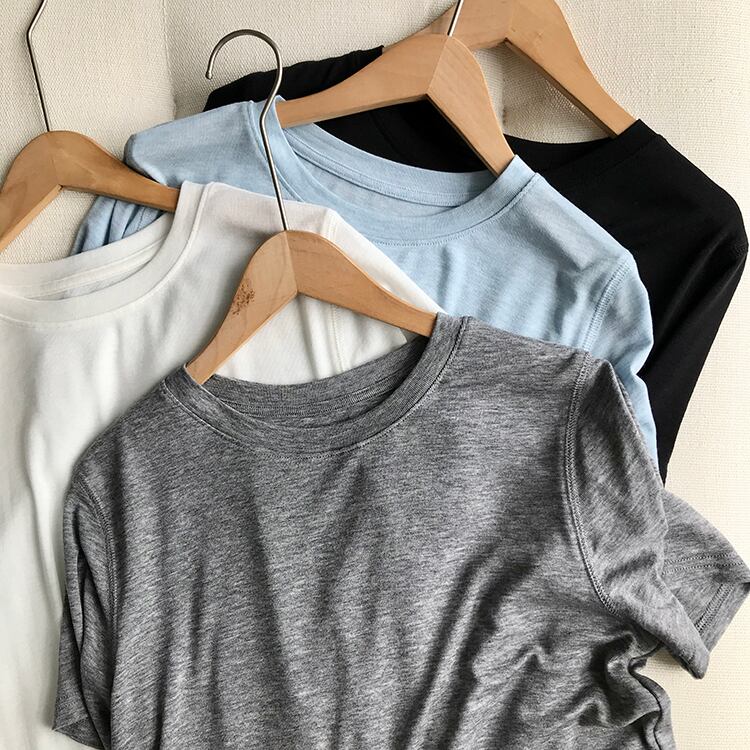 シンプルでこなれ感を演出するデザインが魅力のカットソーです。ゆったりシルエットで動きやすく、快適な着心地をしっかりと実現しています。大人の女性らしさと清潔感を引き立てる無地のデザインで、春夏のカジュアルな着こなしに欠かせないアイテムとなっています。ホワイト、ブラック、グレー、ライトブルーの4色展開で、幅広い年代やシーンに対応しています。