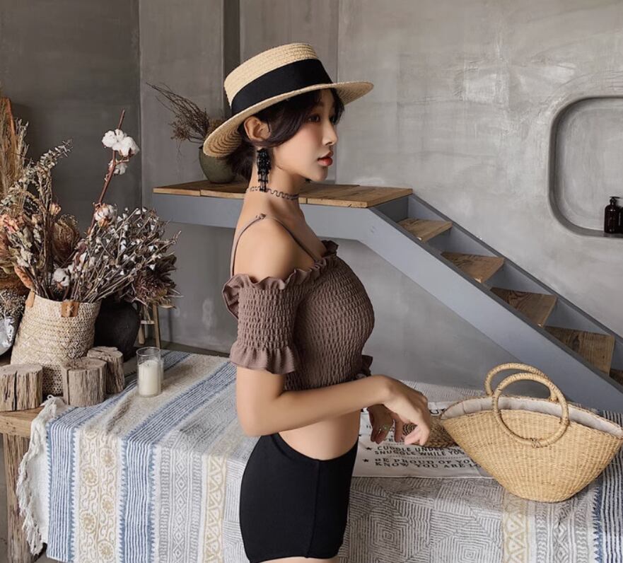 半袖のオフショルダーで個性的なスタイルが魅力の水着